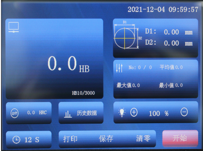 本機(jī)試驗(yàn)過程LCD觸摸屏顯示,壓痕可在儀器上通過測微目鏡直接測量,并能在LCD觸摸屏顯示屏顯示壓痕的直徑,砝碼加力。